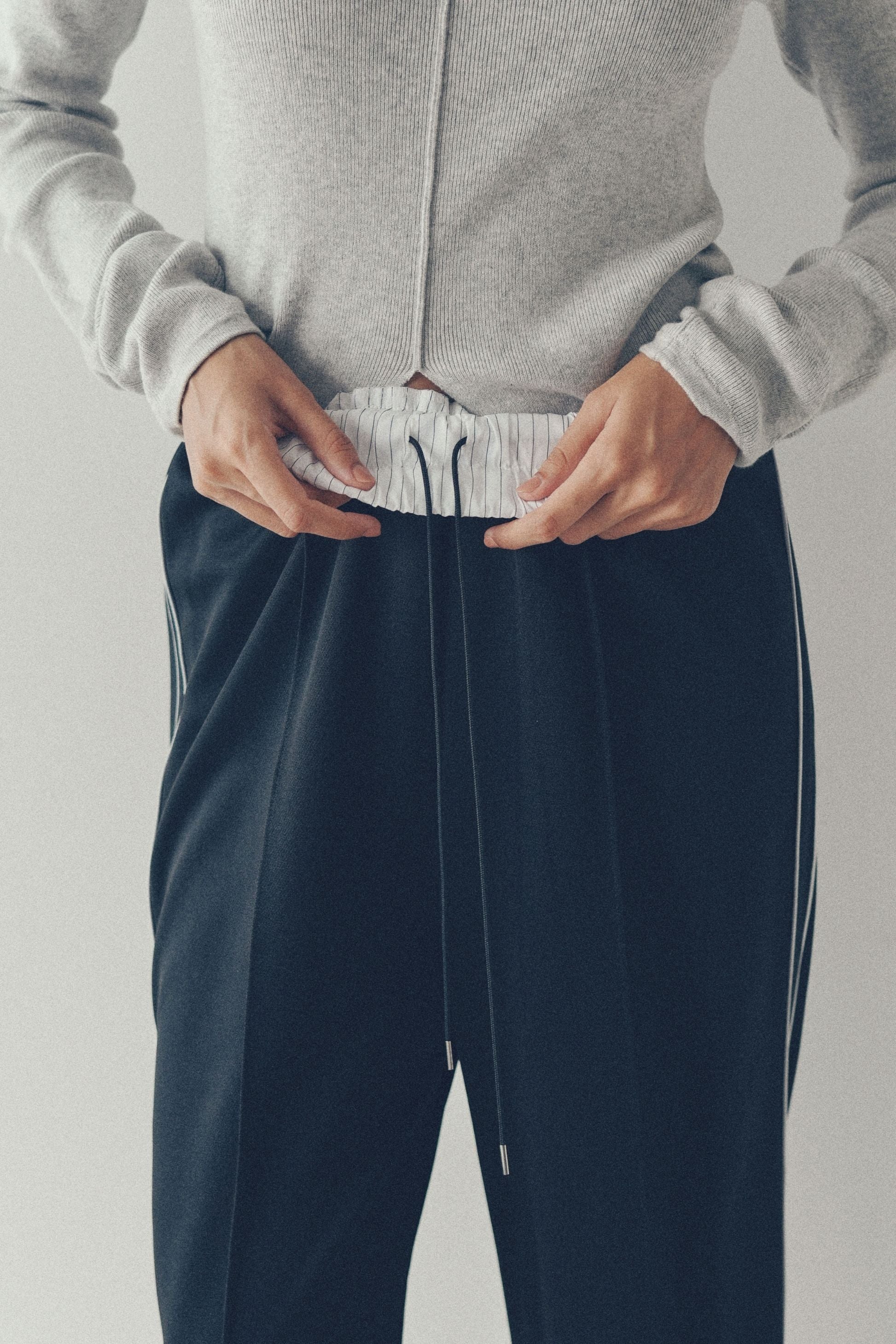 2ラインで脚長効果を叶える、抜け感トラックパンツ。