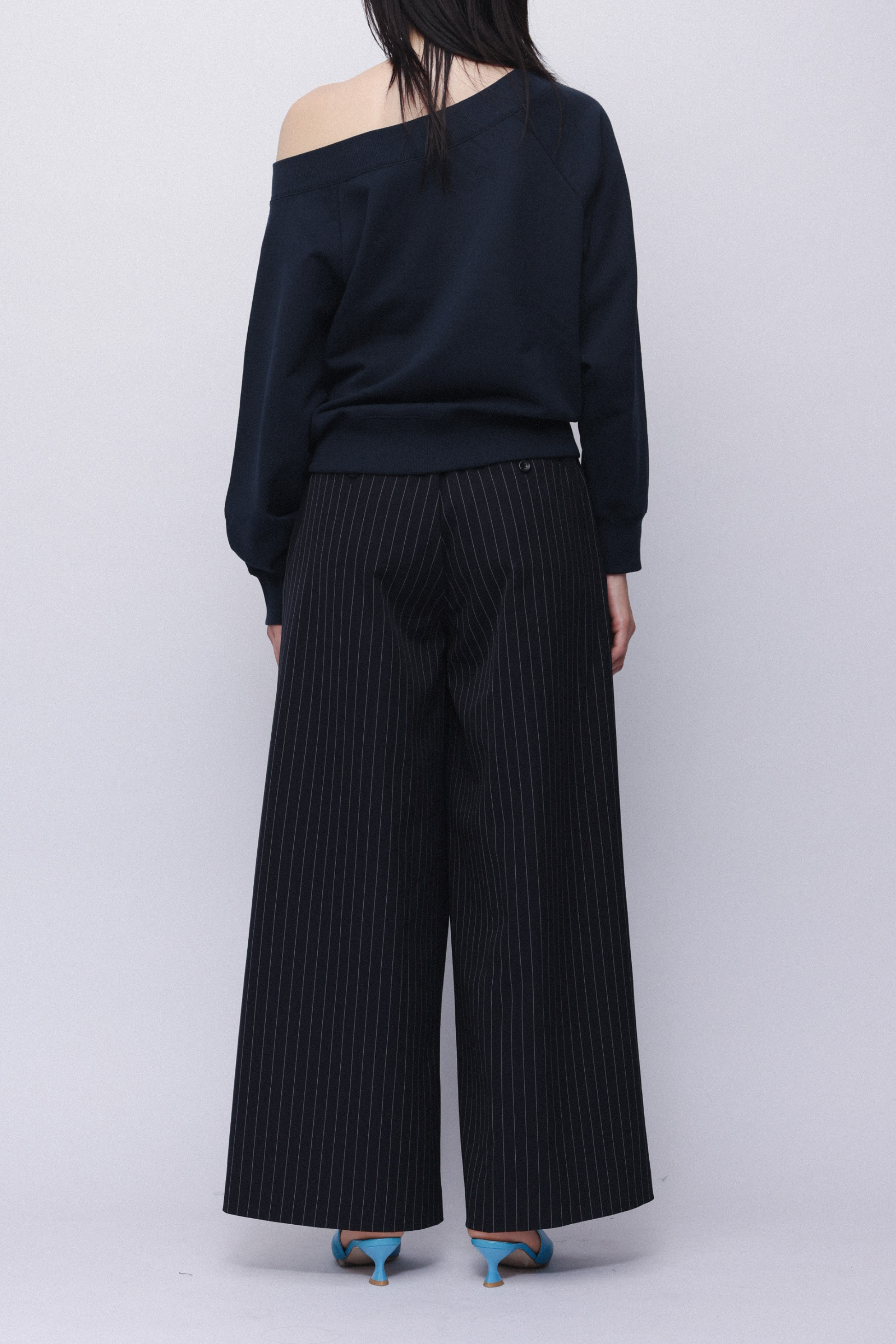Stripe wide slacks 【Navy】