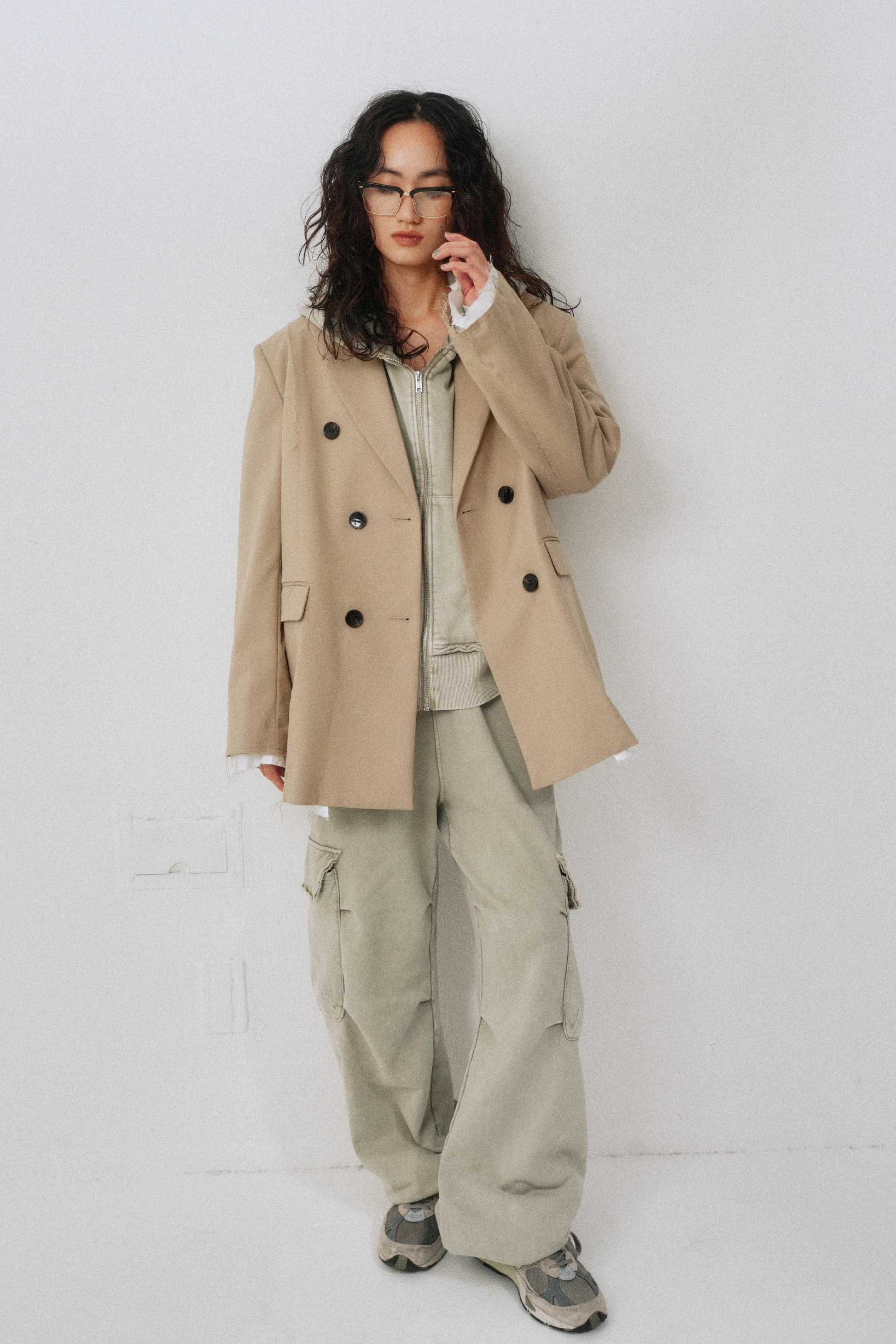オーバーサイズで長め丈なので、ヒップや腰回りのカバーもできます。