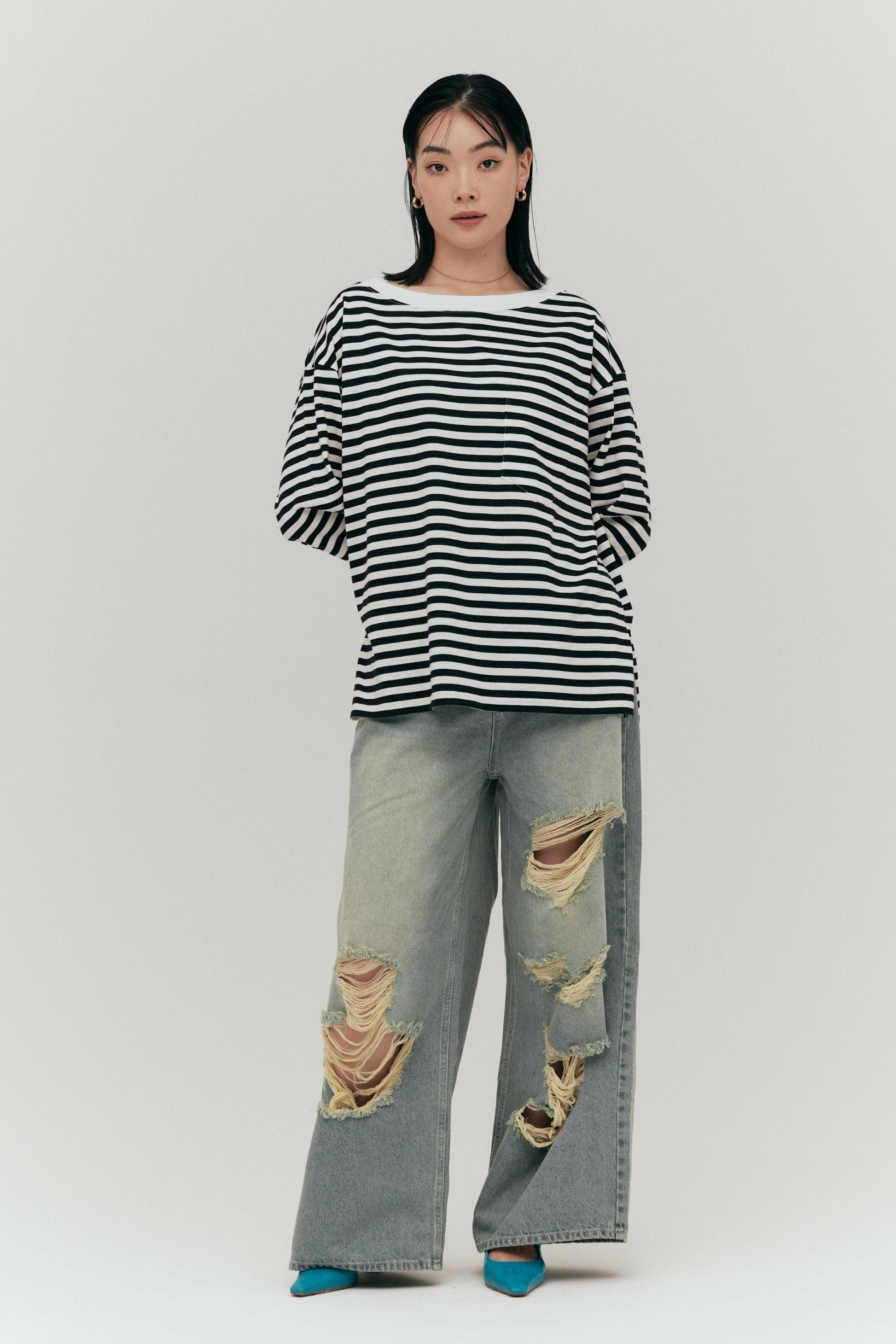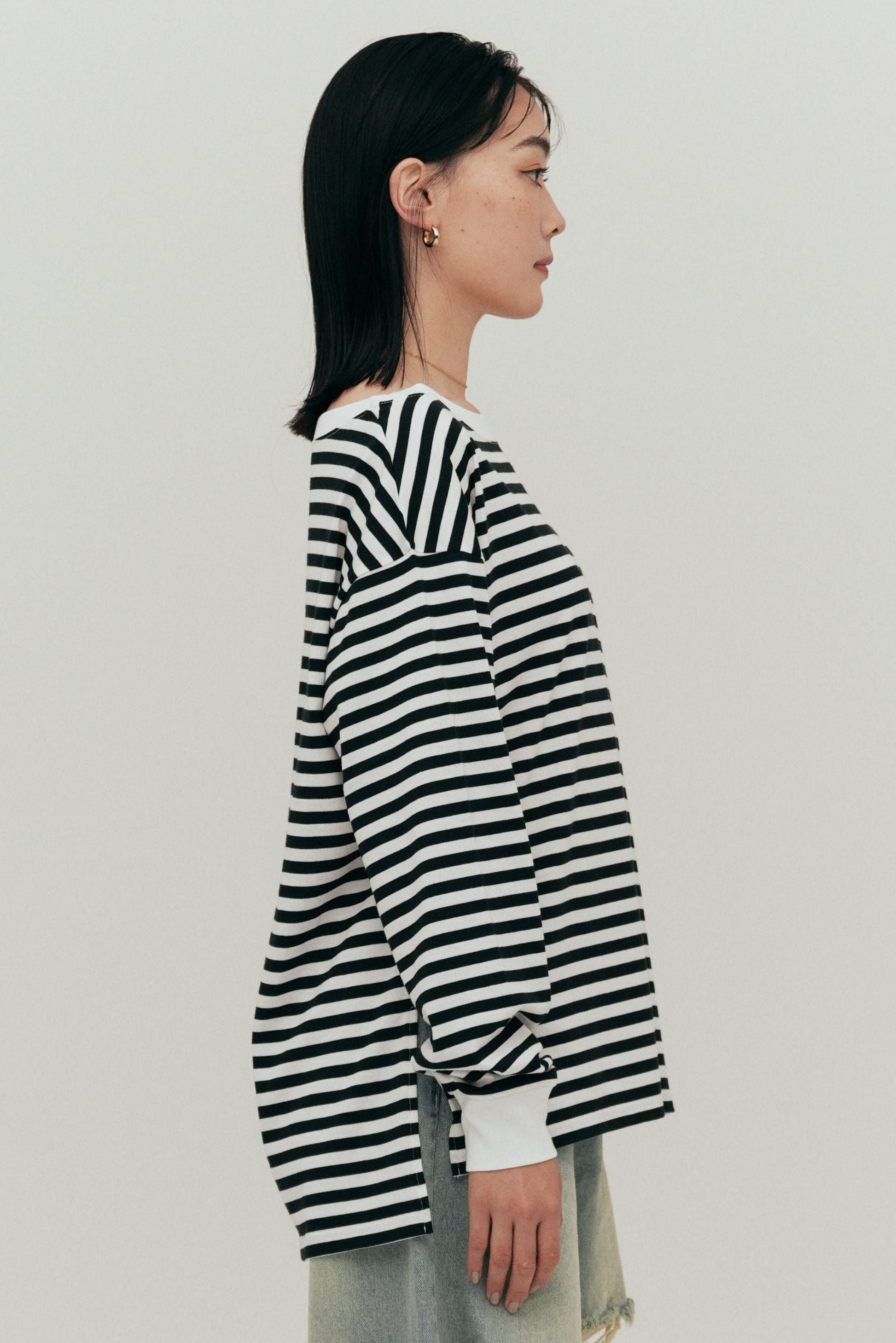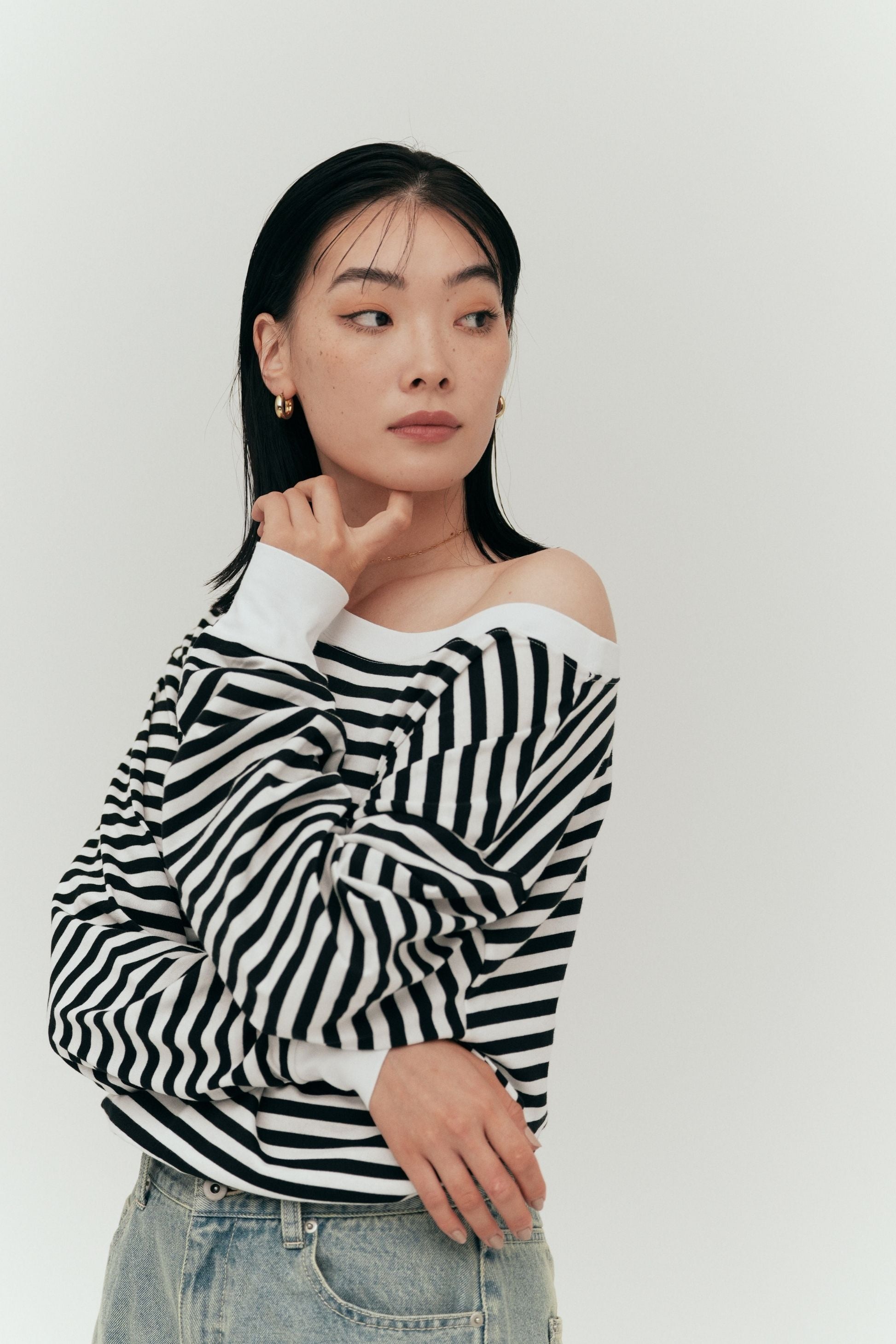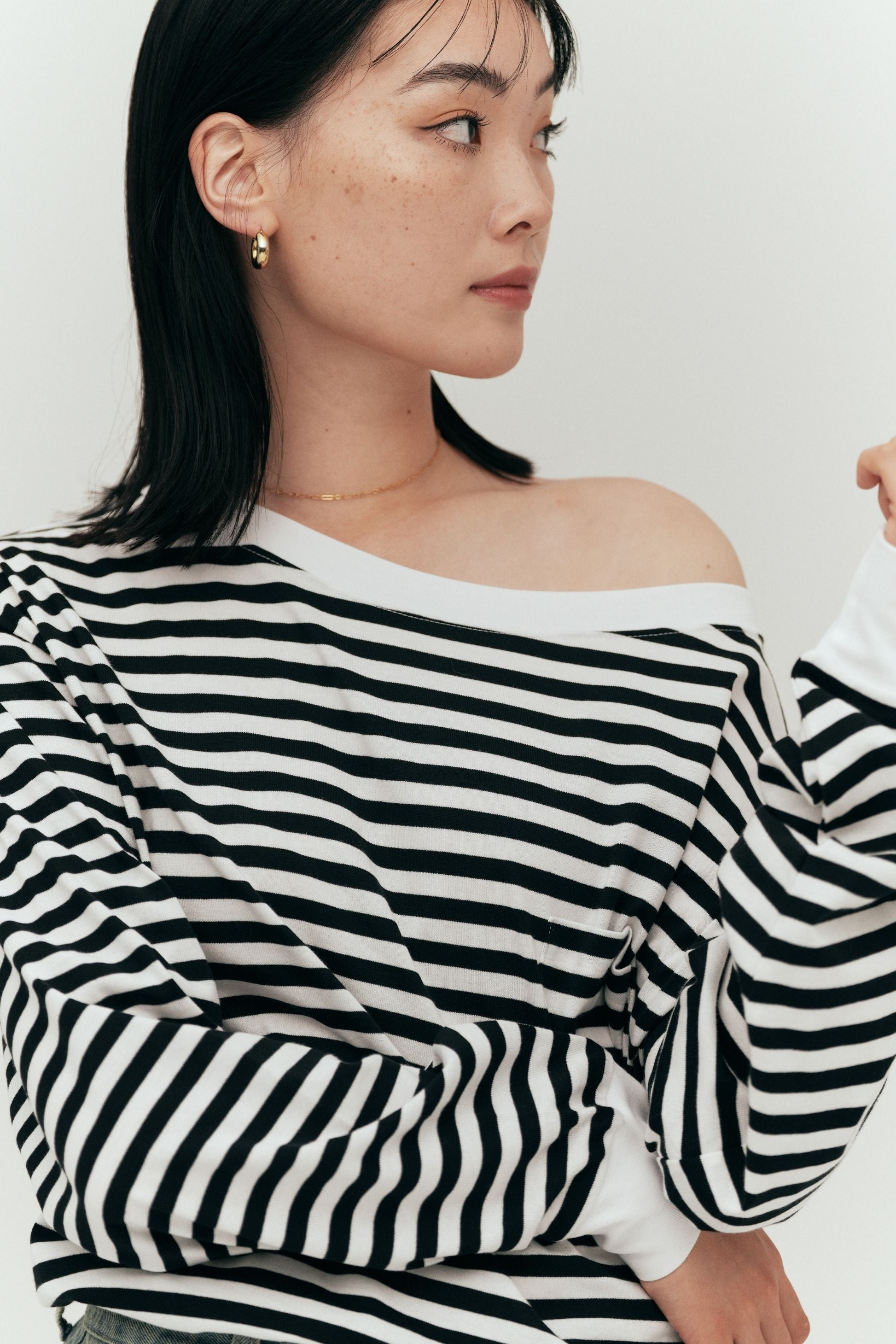 オフショル、ワンショルダーでも様々な着方で着回しできるアイテムです。また首周りをあけてラフさと女性らしさを両立させてくれる1枚です。カット素材のためシーズンも長く着用いただけます。
