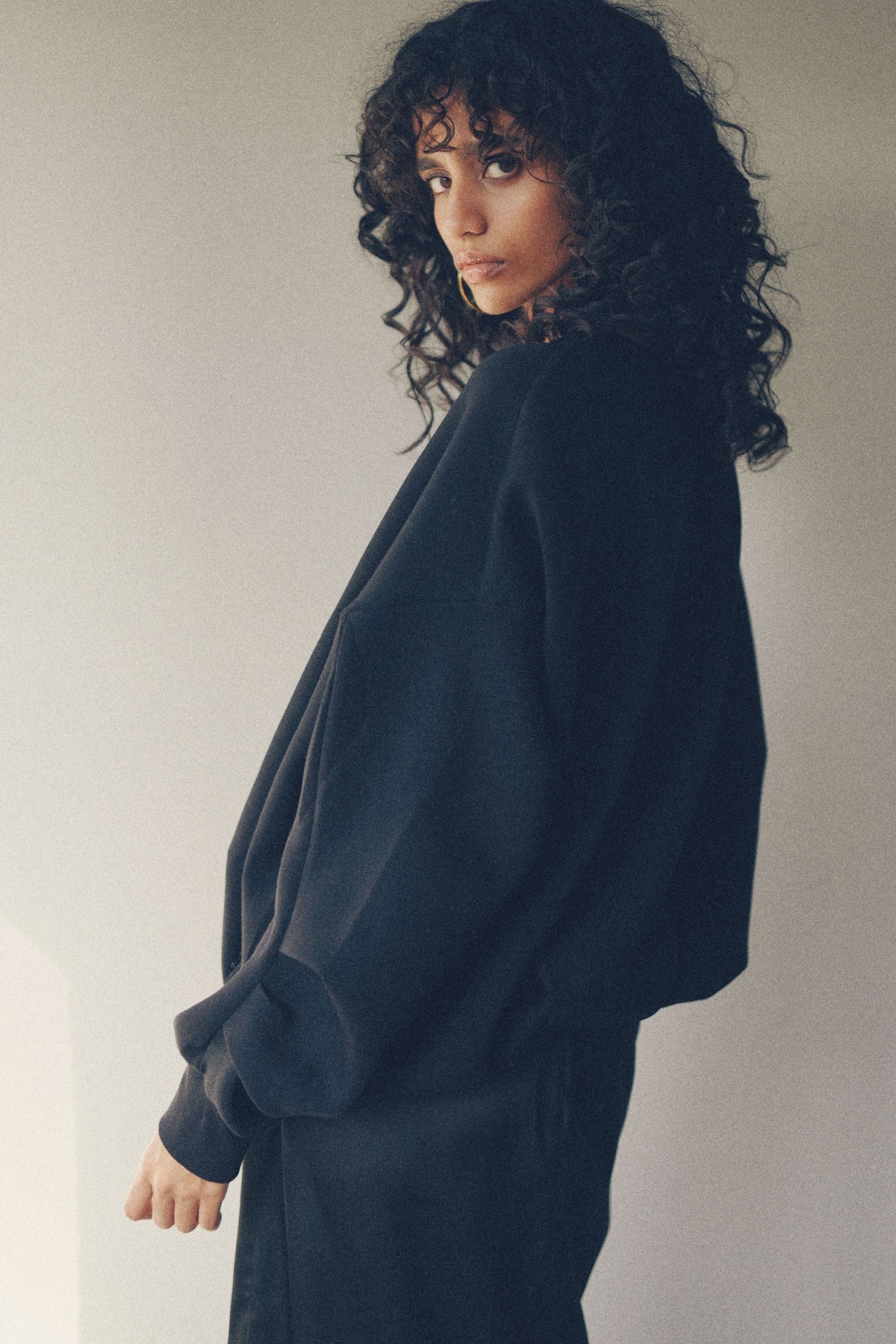 ゆったりとしたリラックス感がありながらも、立体的なフォルムがモードな雰囲気を演出。