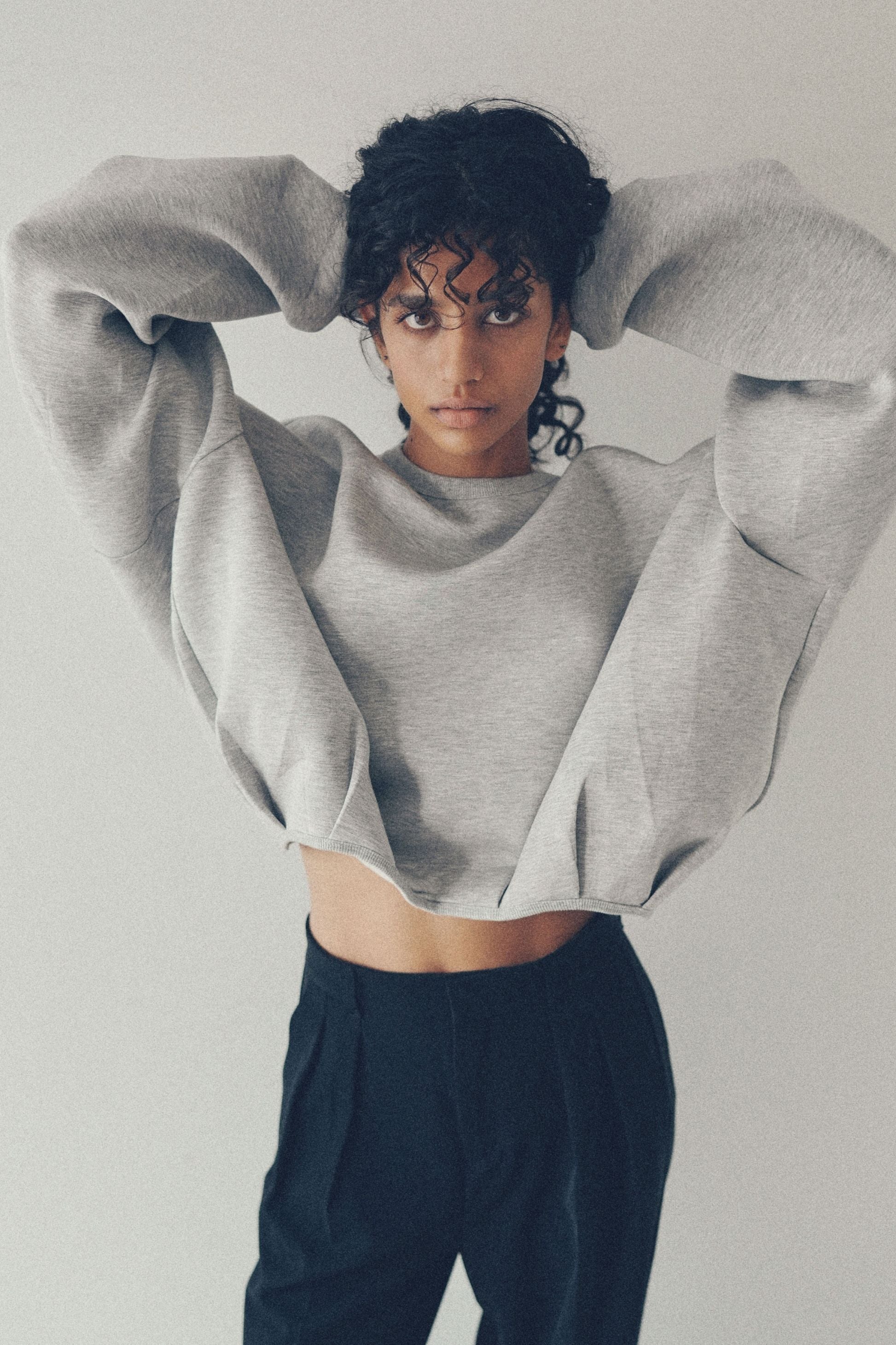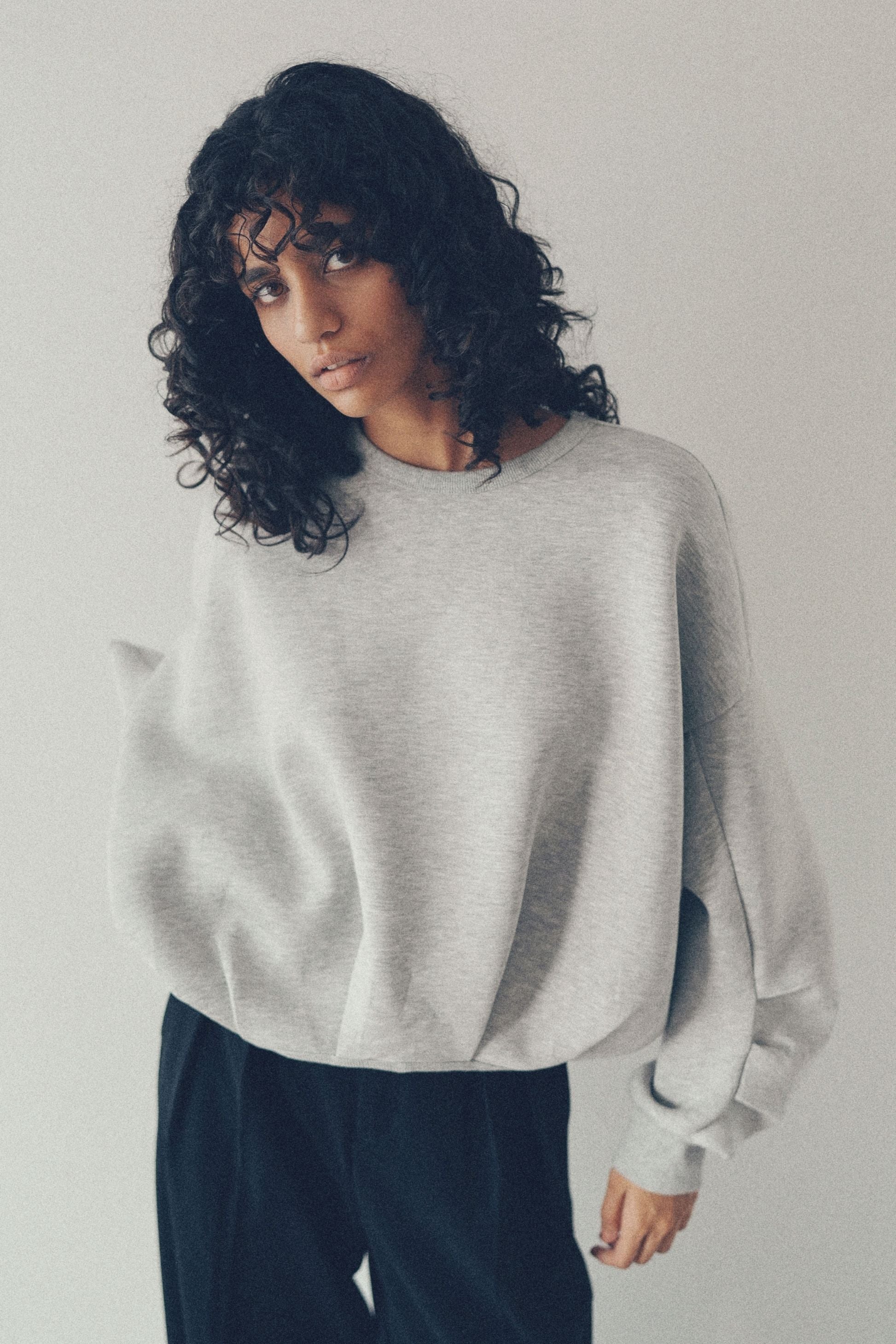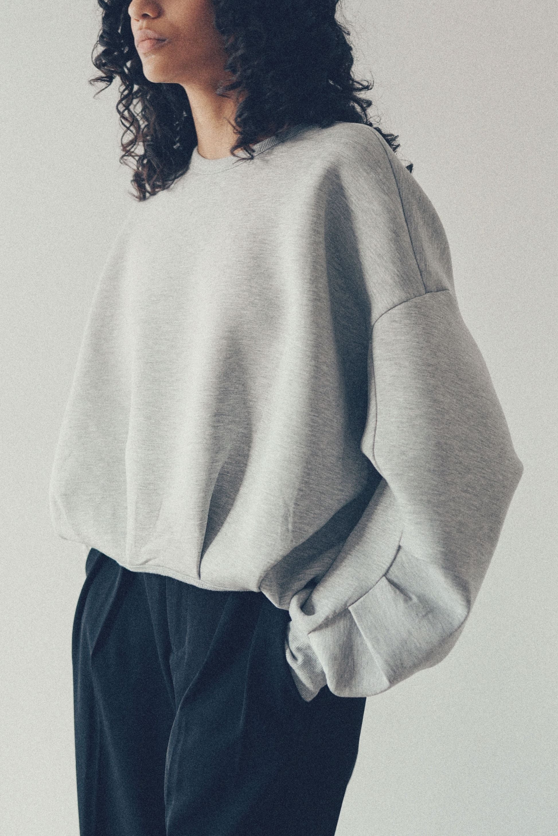 丸みのあるシルエットを生み出すボリュームタックが、シンプルな中に存在感をプラスするスウェット。