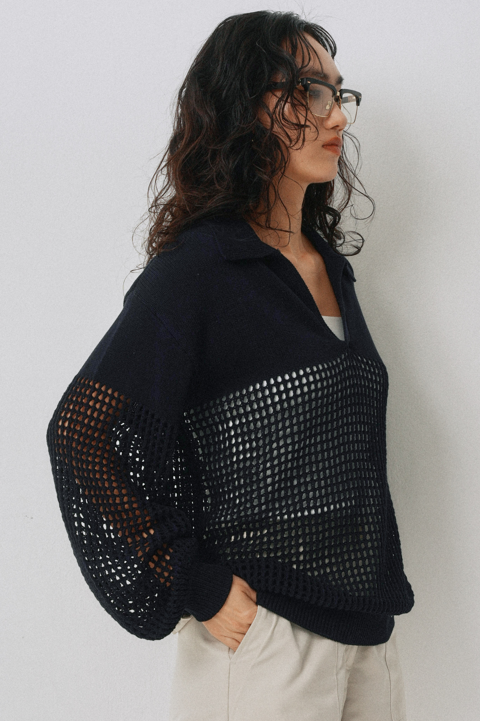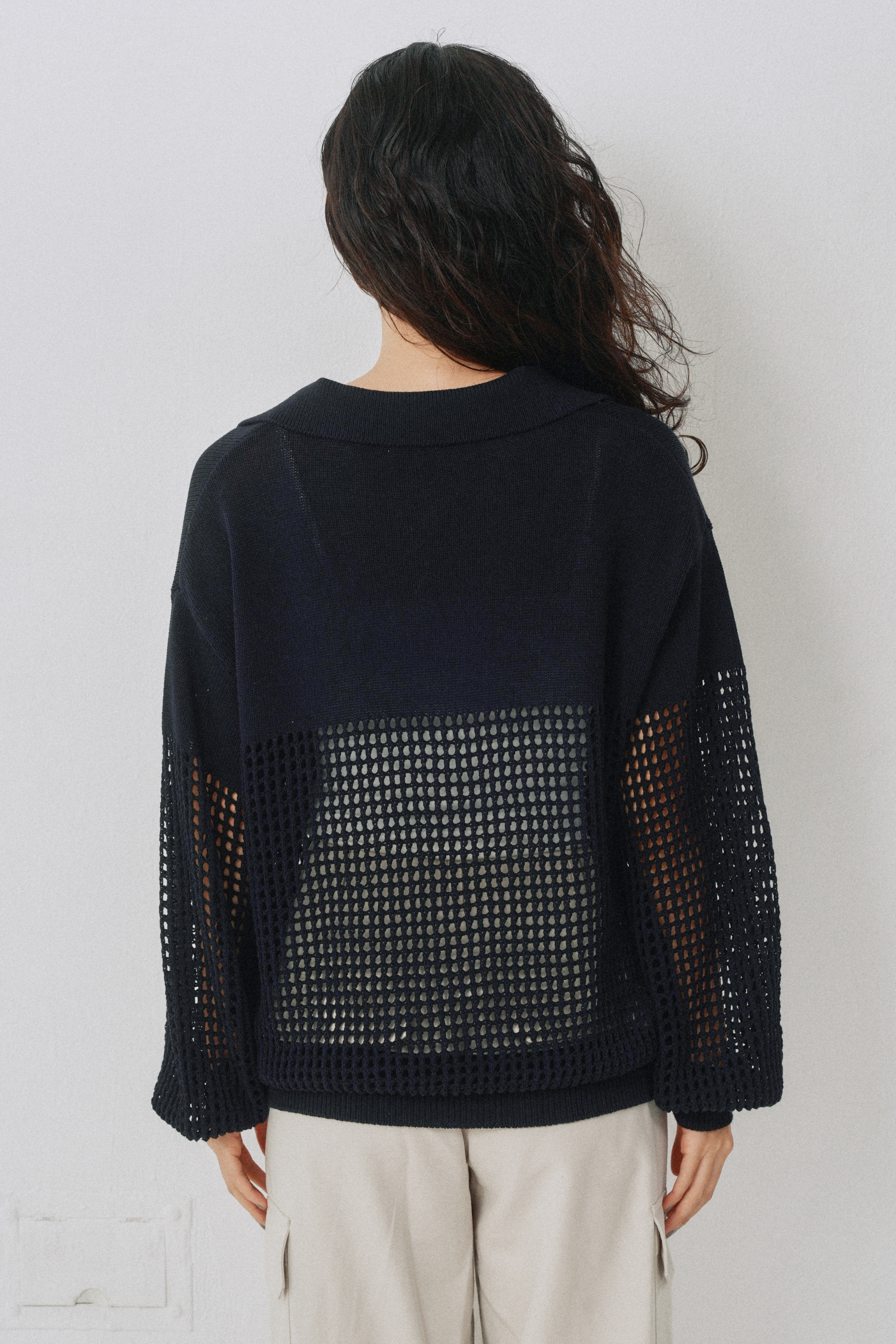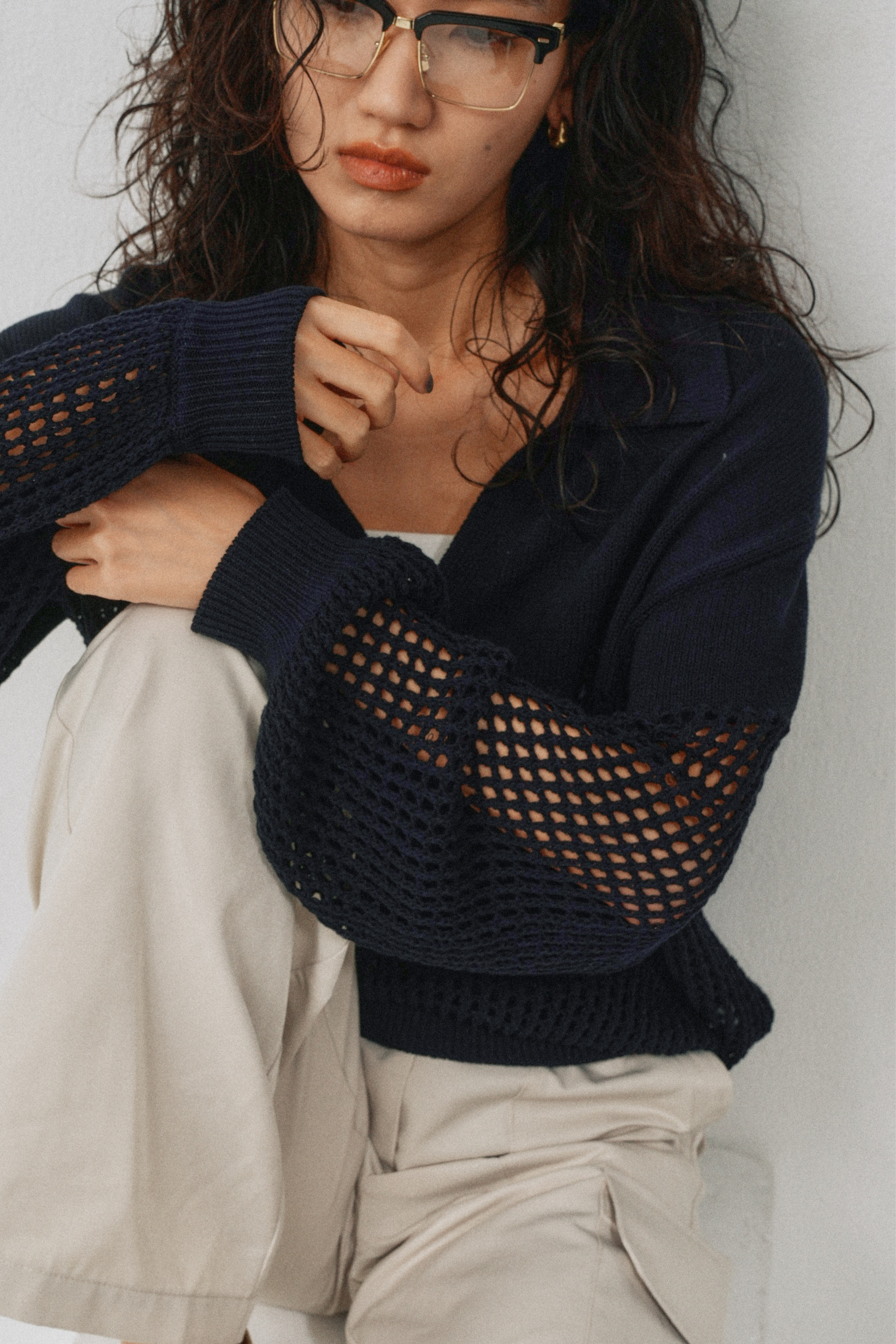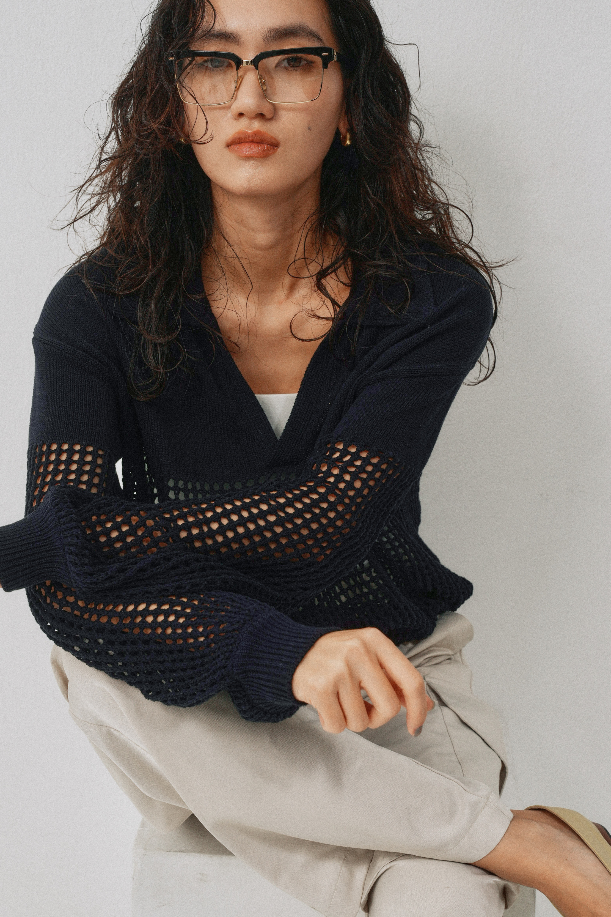 ポロ型デザインでカジュアルな抜け感がありつつ、きちんとした上品な印象もあわせもつ一枚になっております。