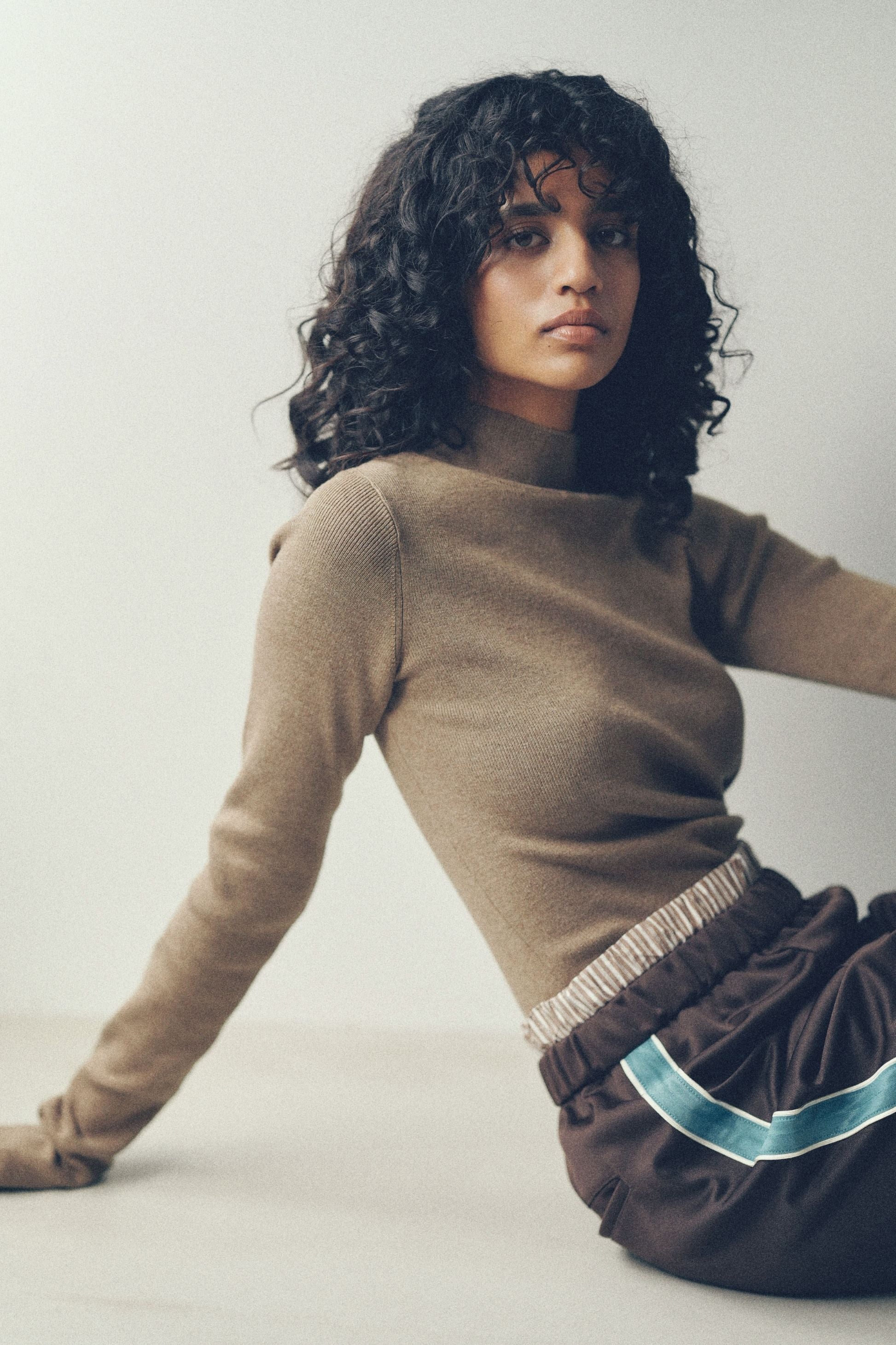 2ラインで脚長効果を叶える、抜け感トラックパンツ。