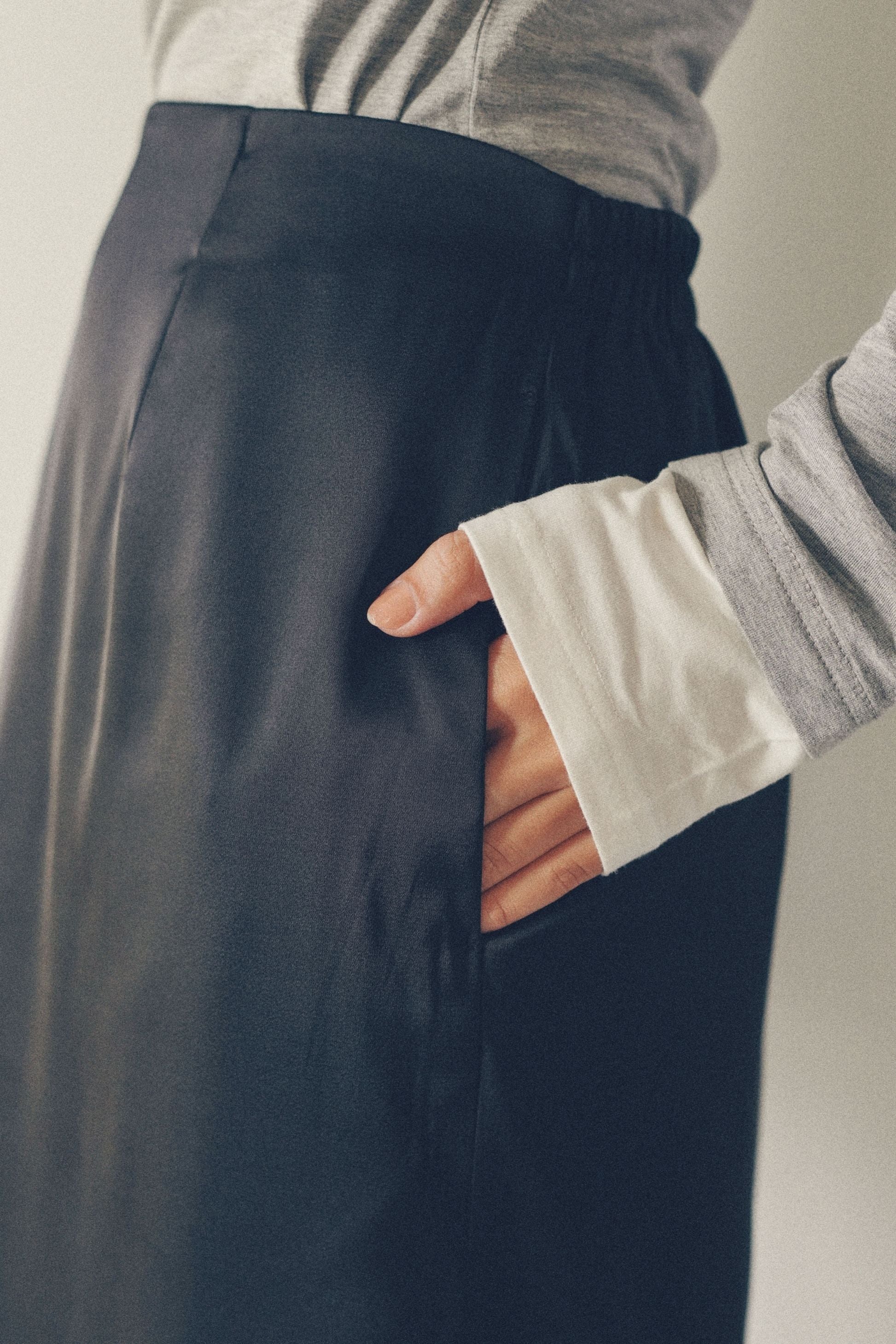 裾にあしらった繊細なレーストリムが、女性らしさと抜け感をプラスし、しっとりと光沢のあるサテン素材が上品で高見え。