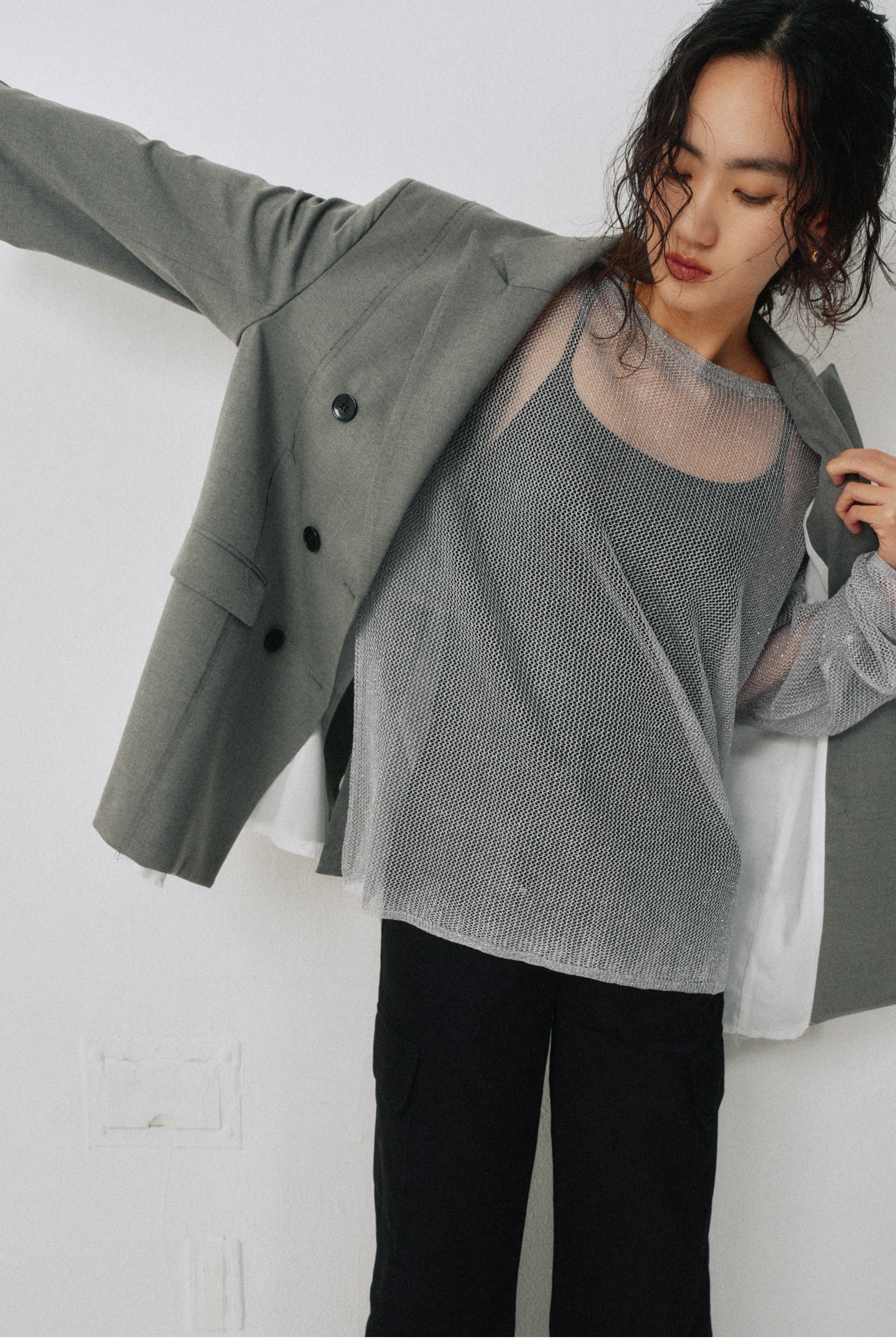 程よい透け感が旬なムードを演出し、インナーとのレイヤードで幅広い着こなしが可能です。レイヤードの着回しで次第でロングシーズン活躍できます。
