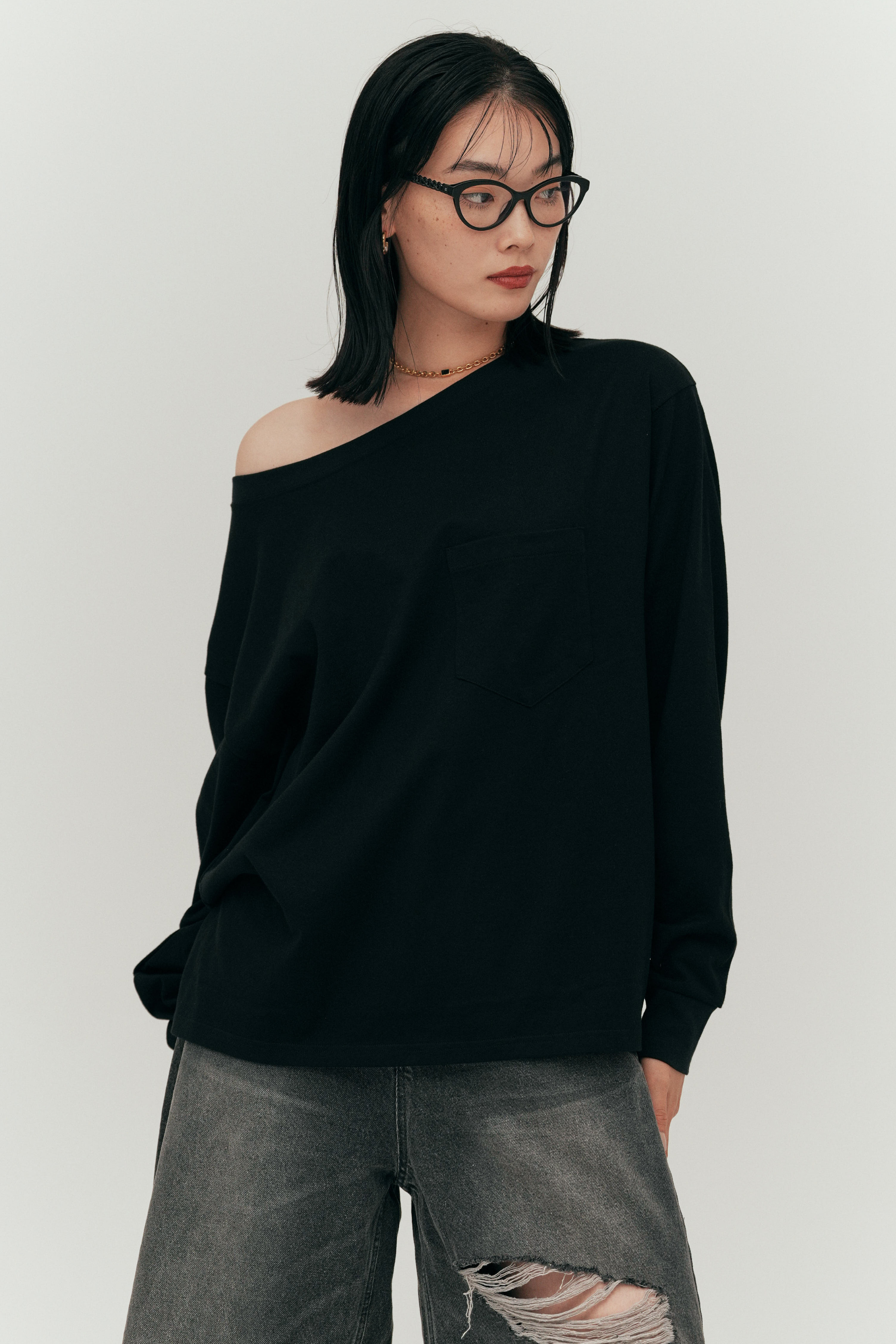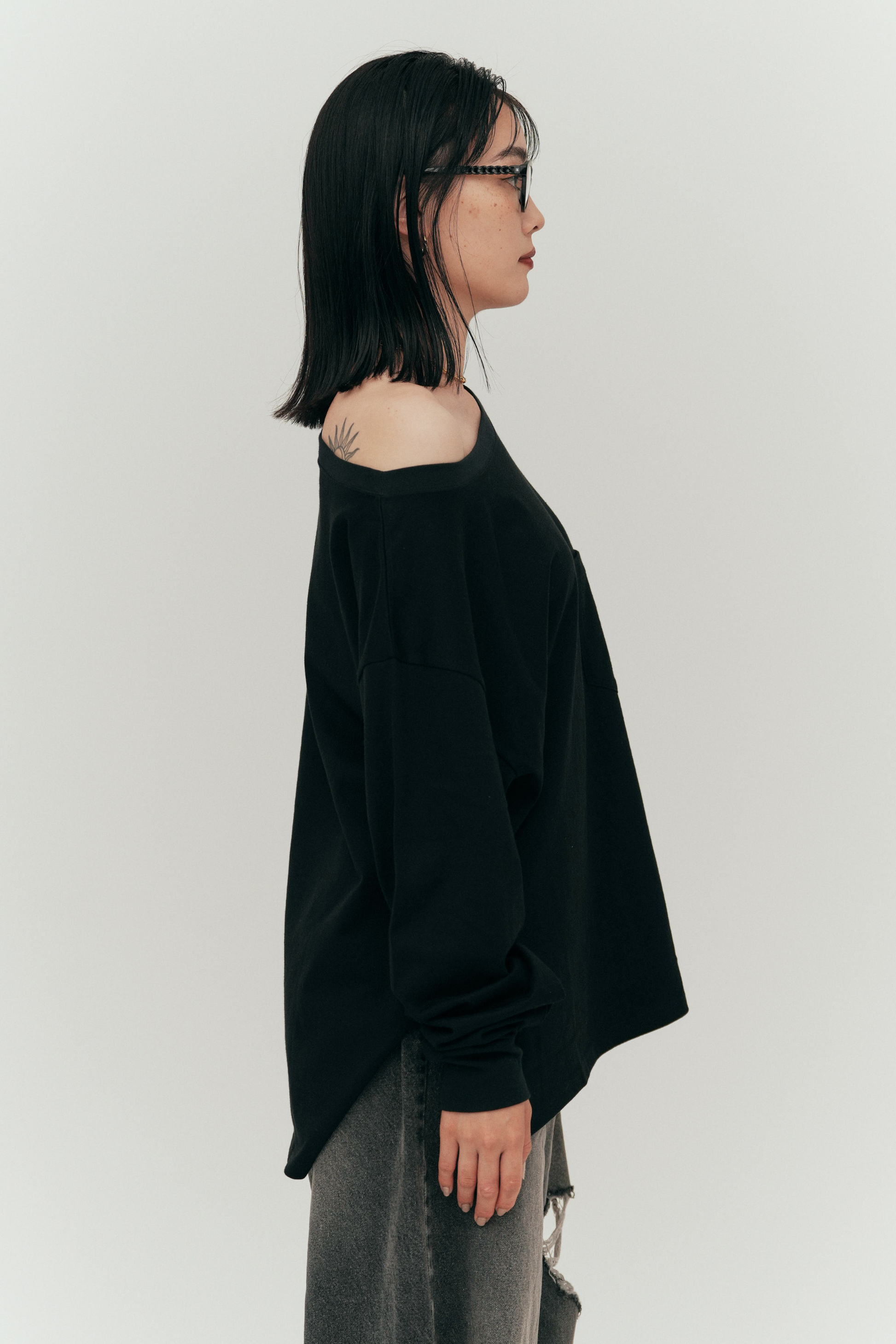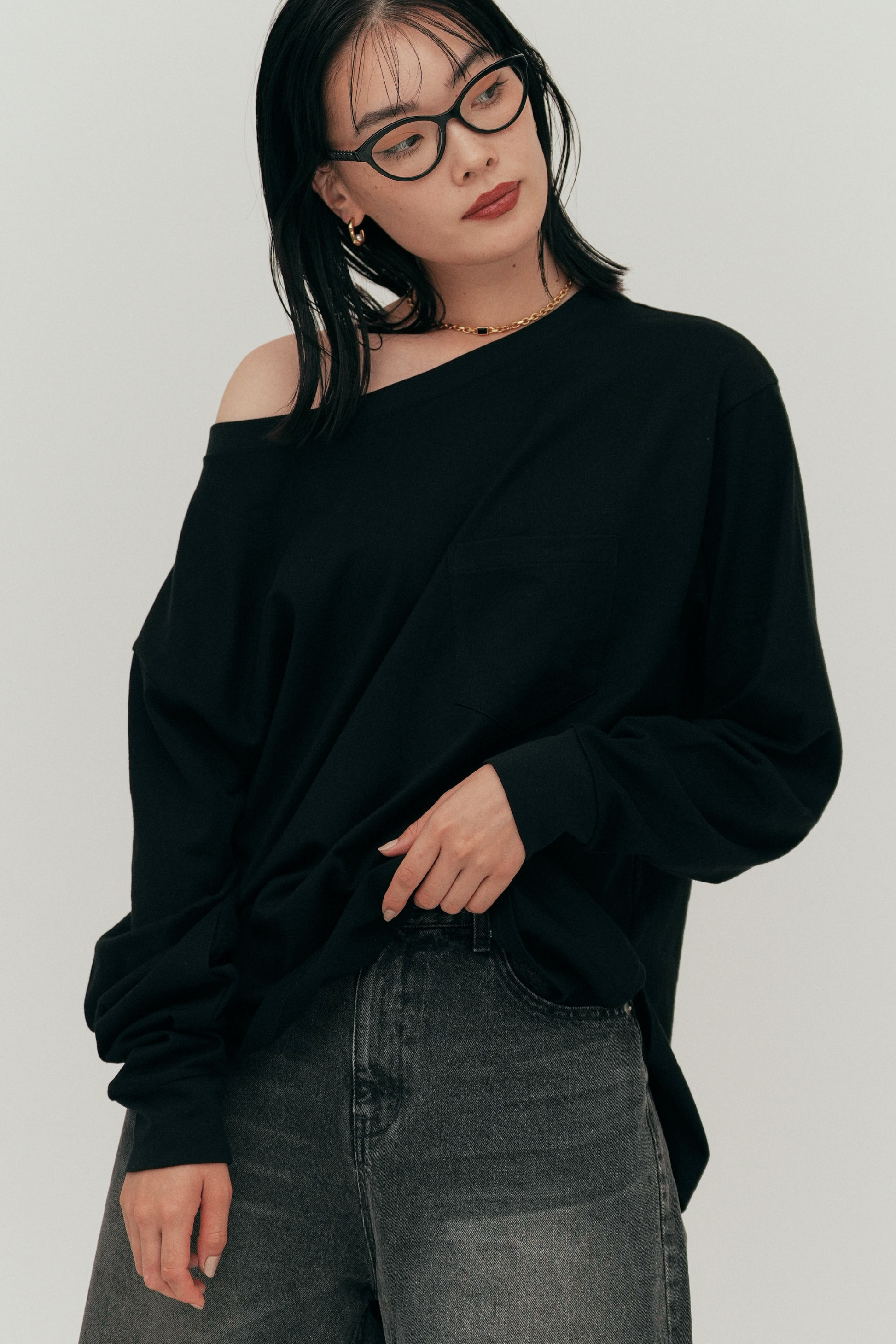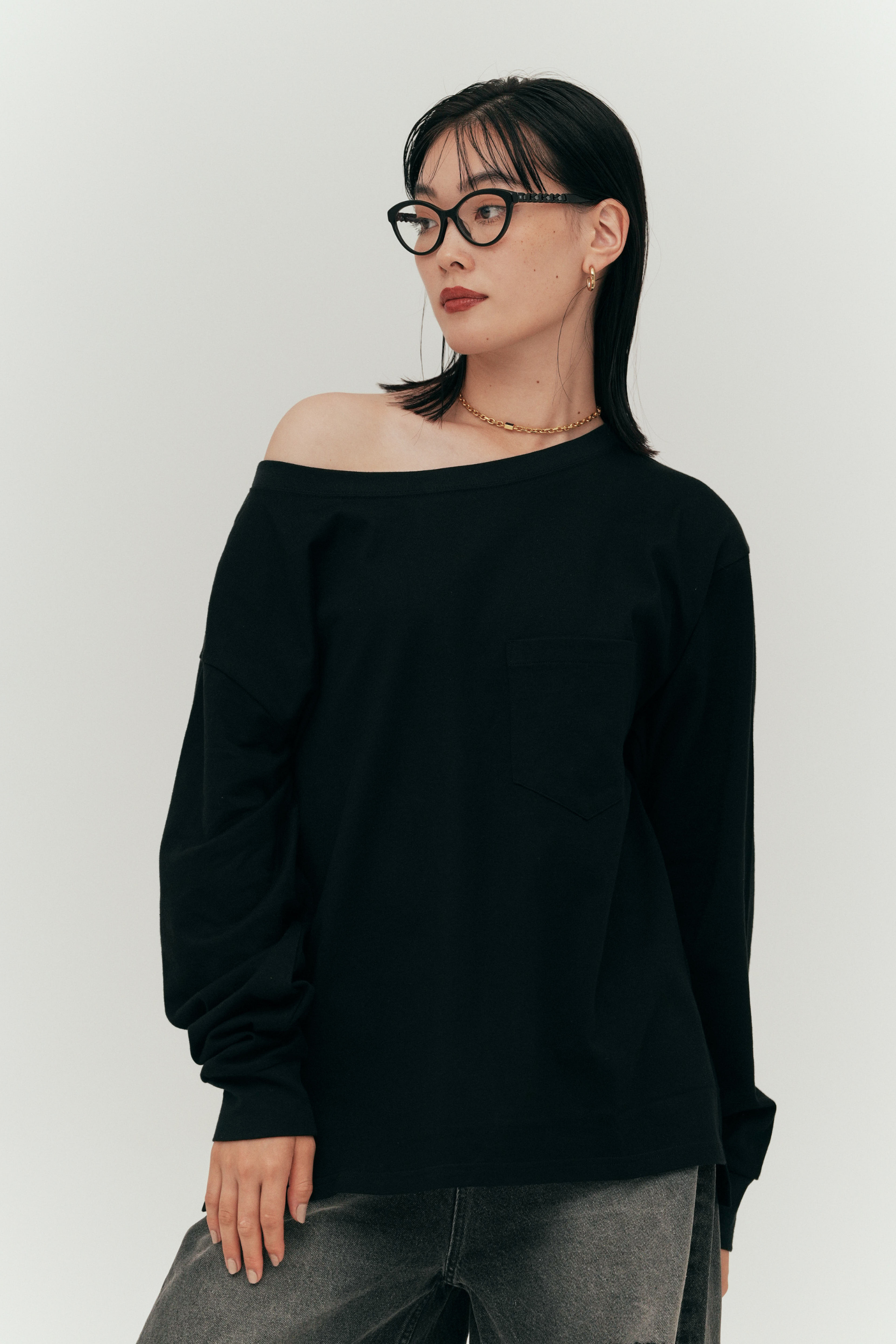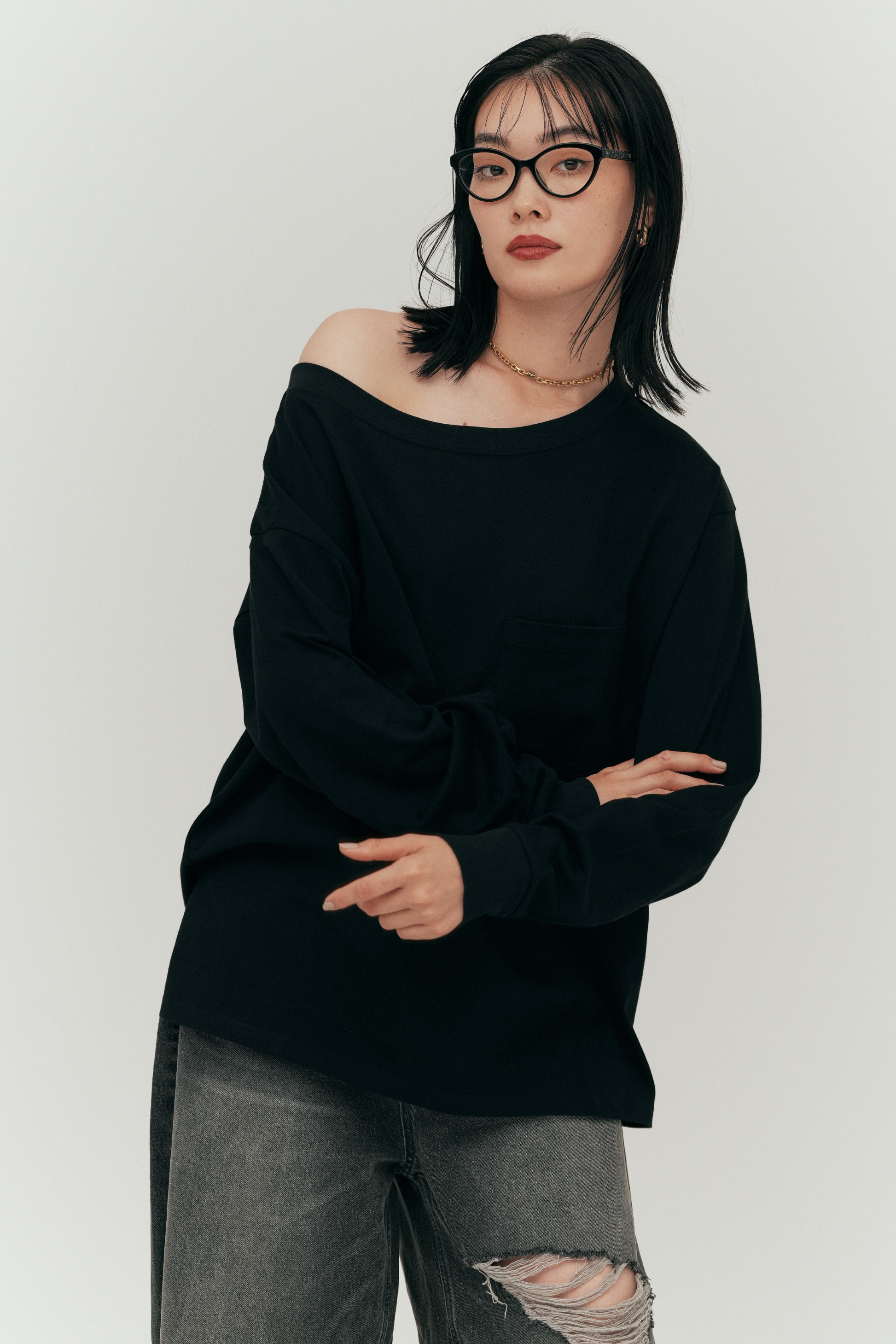 オフショル、ワンショルダーでも様々な着方で着回しできるアイテムです。また首周りをあけてラフさと女性らしさを両立させてくれる1枚です。カット素材のためシーズンも長く着用いただけます。