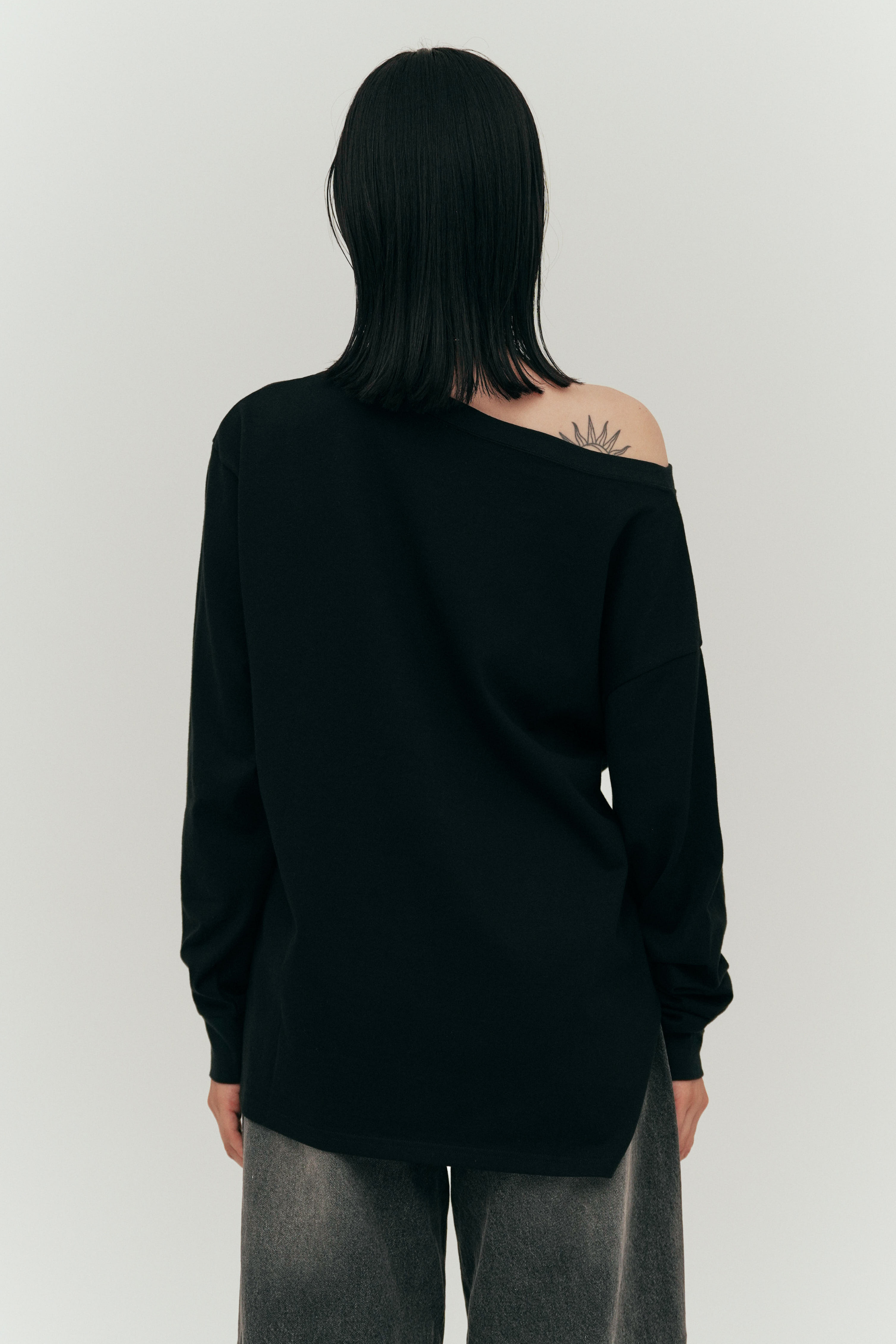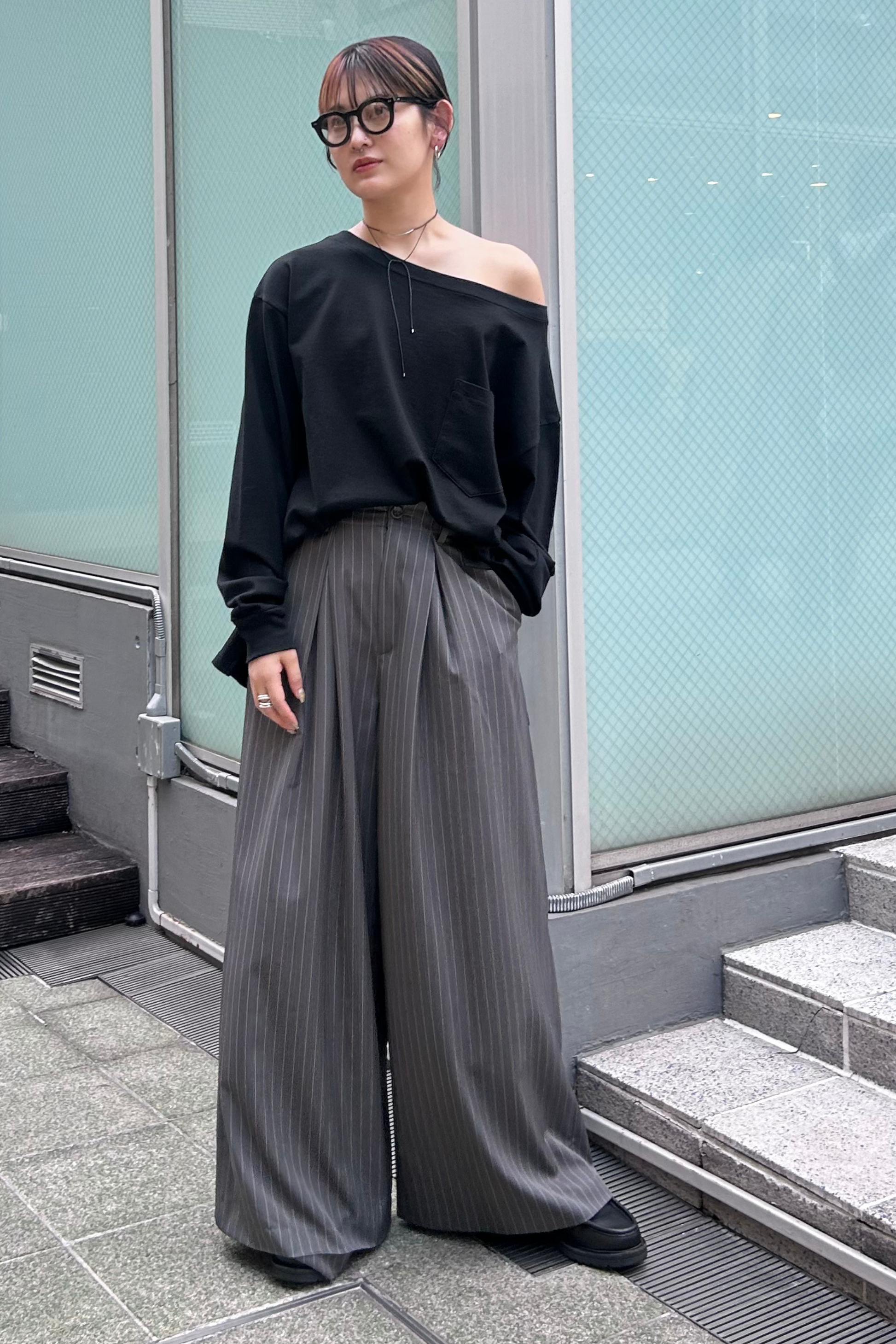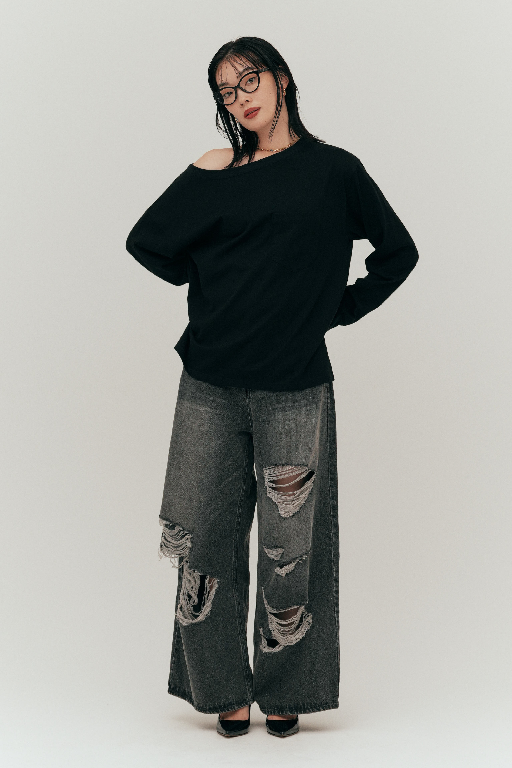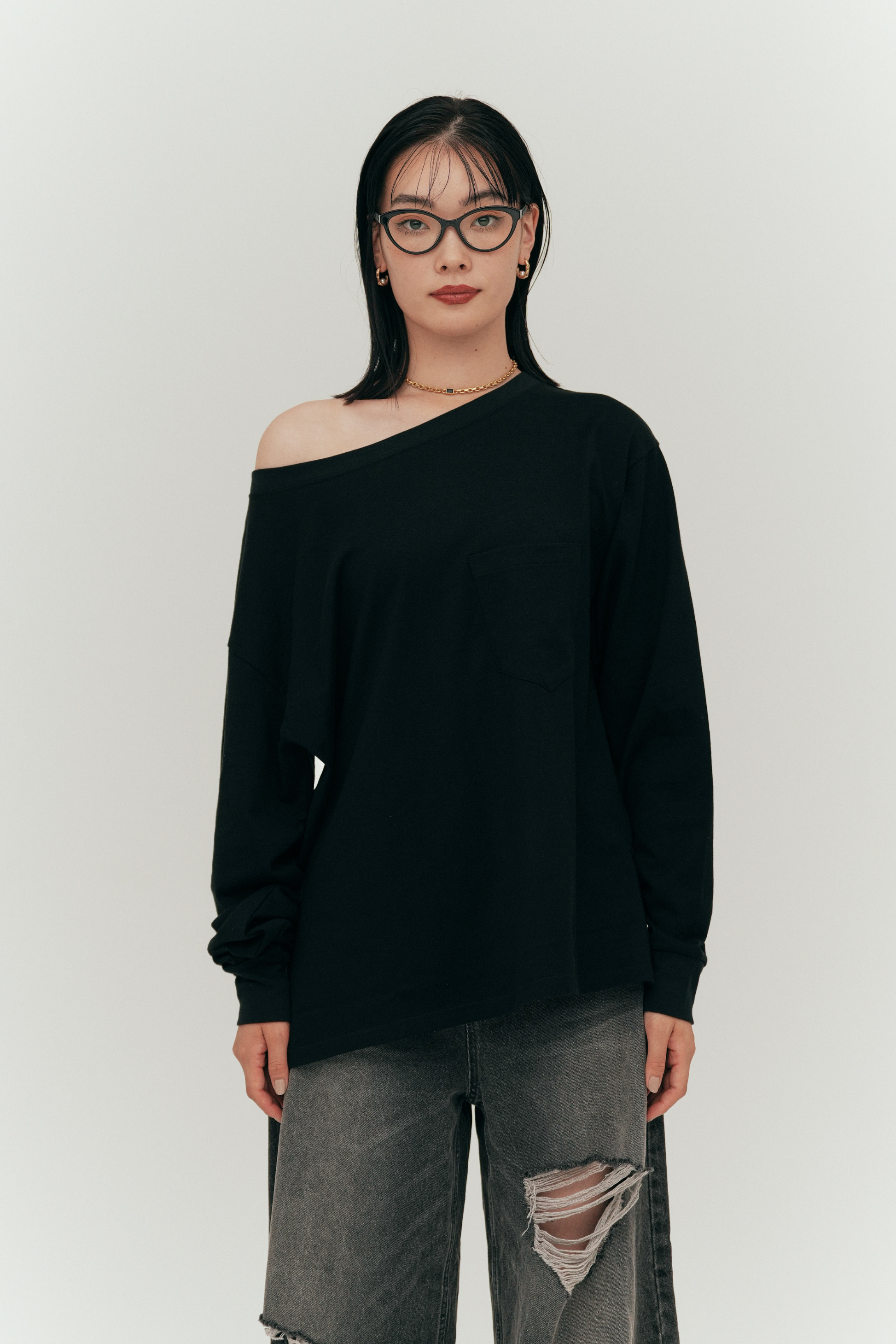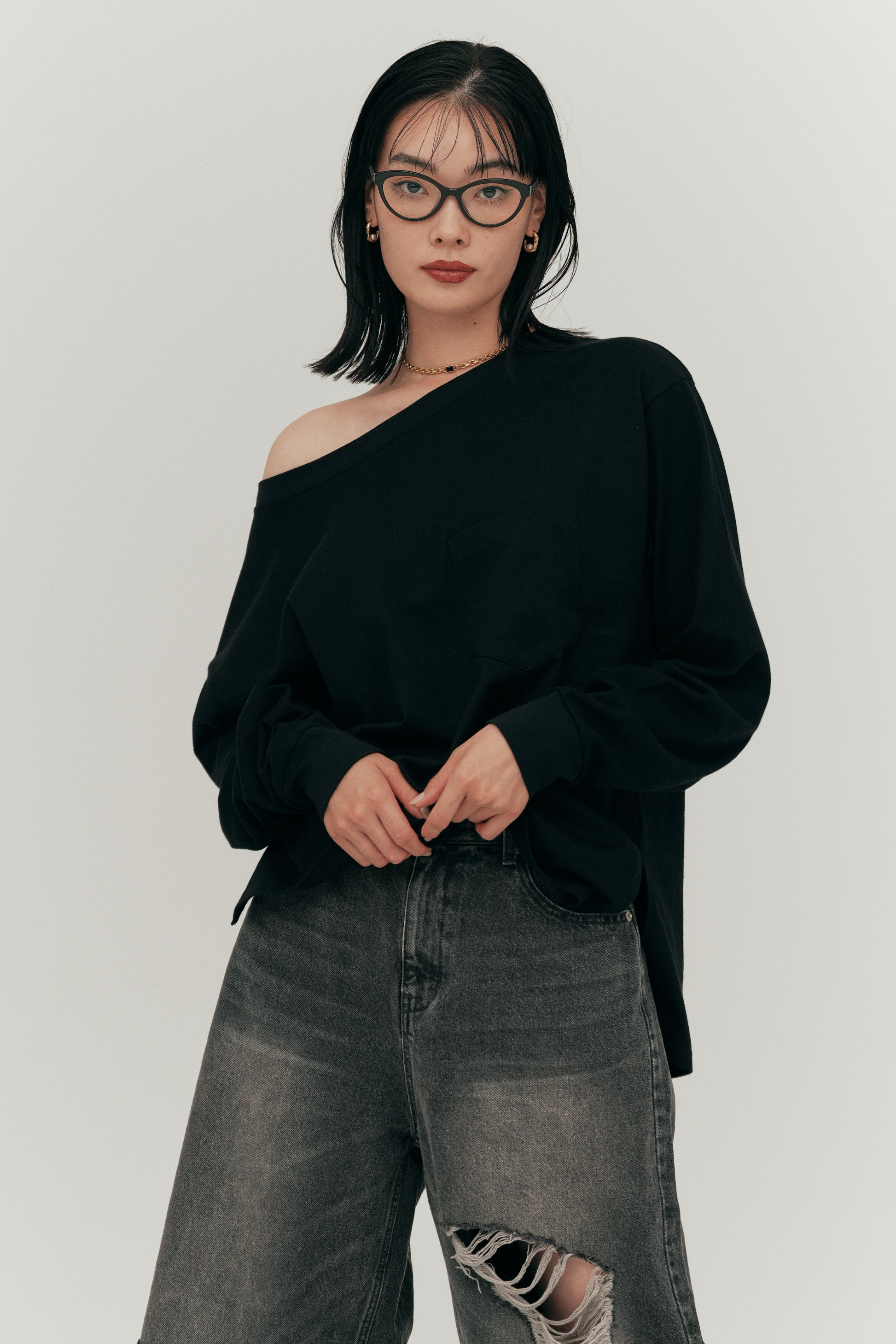 オフショル、ワンショルダーでも様々な着方で着回しできるアイテムです。また首周りをあけてラフさと女性らしさを両立させてくれる1枚です。カット素材のためシーズンも長く着用いただけます。