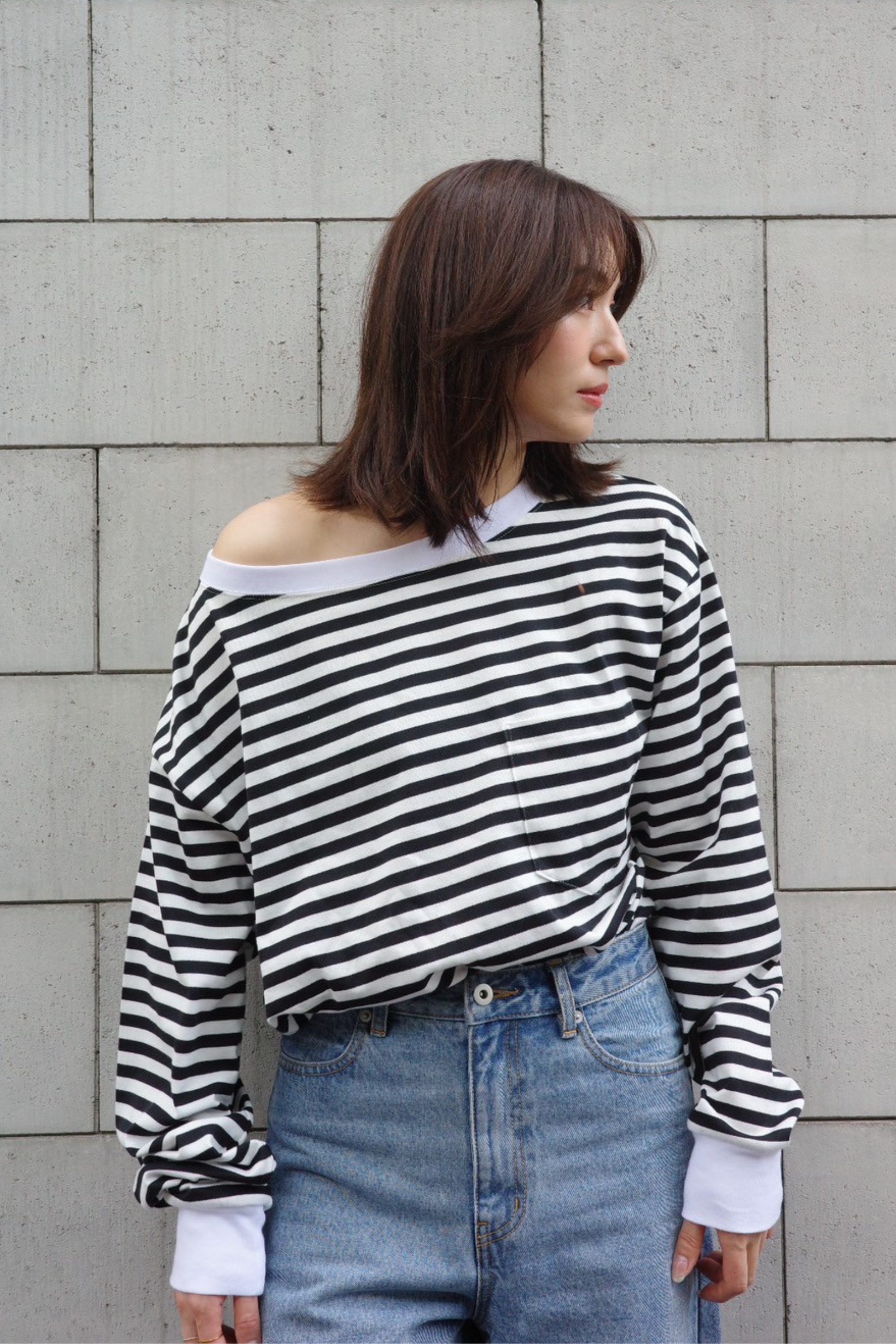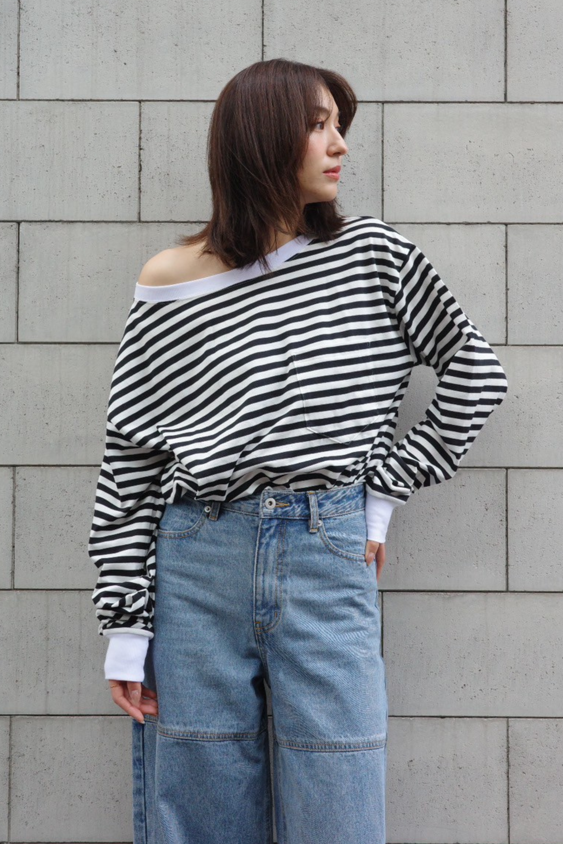 オフショル、ワンショルダーでも様々な着方で着回しできるアイテムです。また首周りをあけてラフさと女性らしさを両立させてくれる1枚です。カット素材のためシーズンも長く着用いただけます。