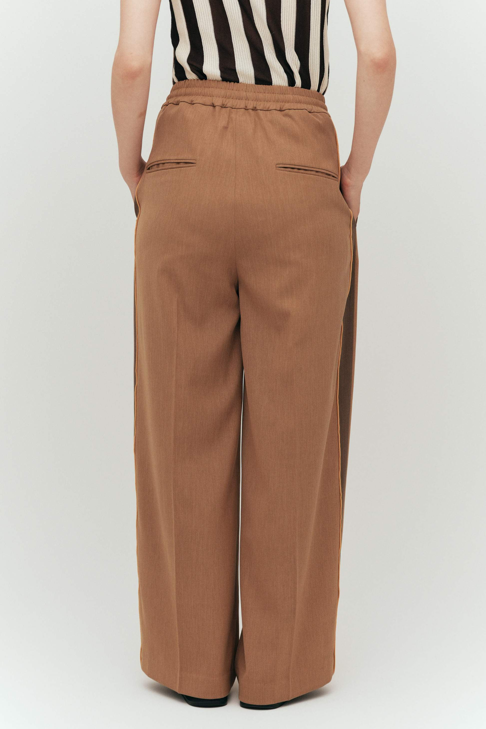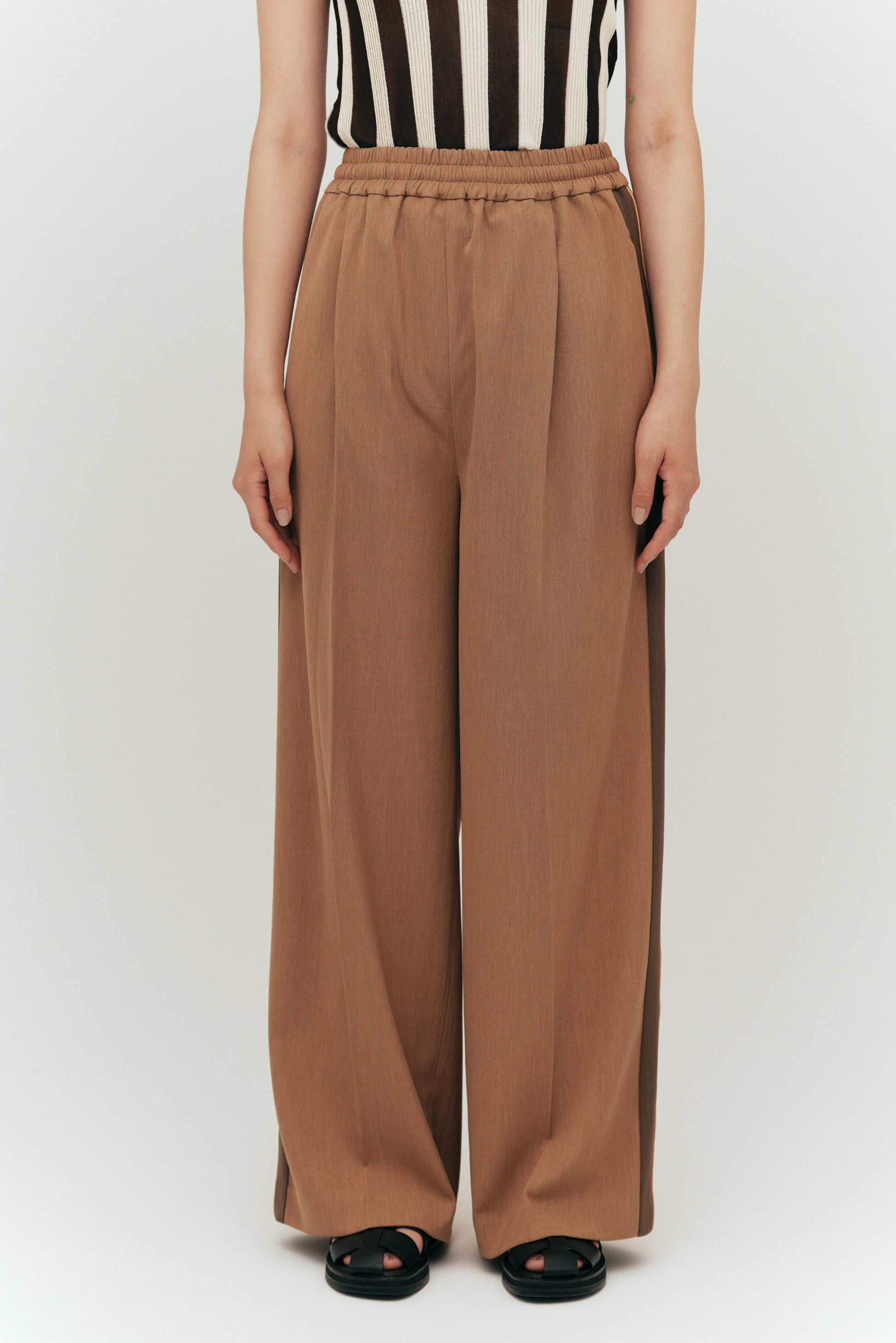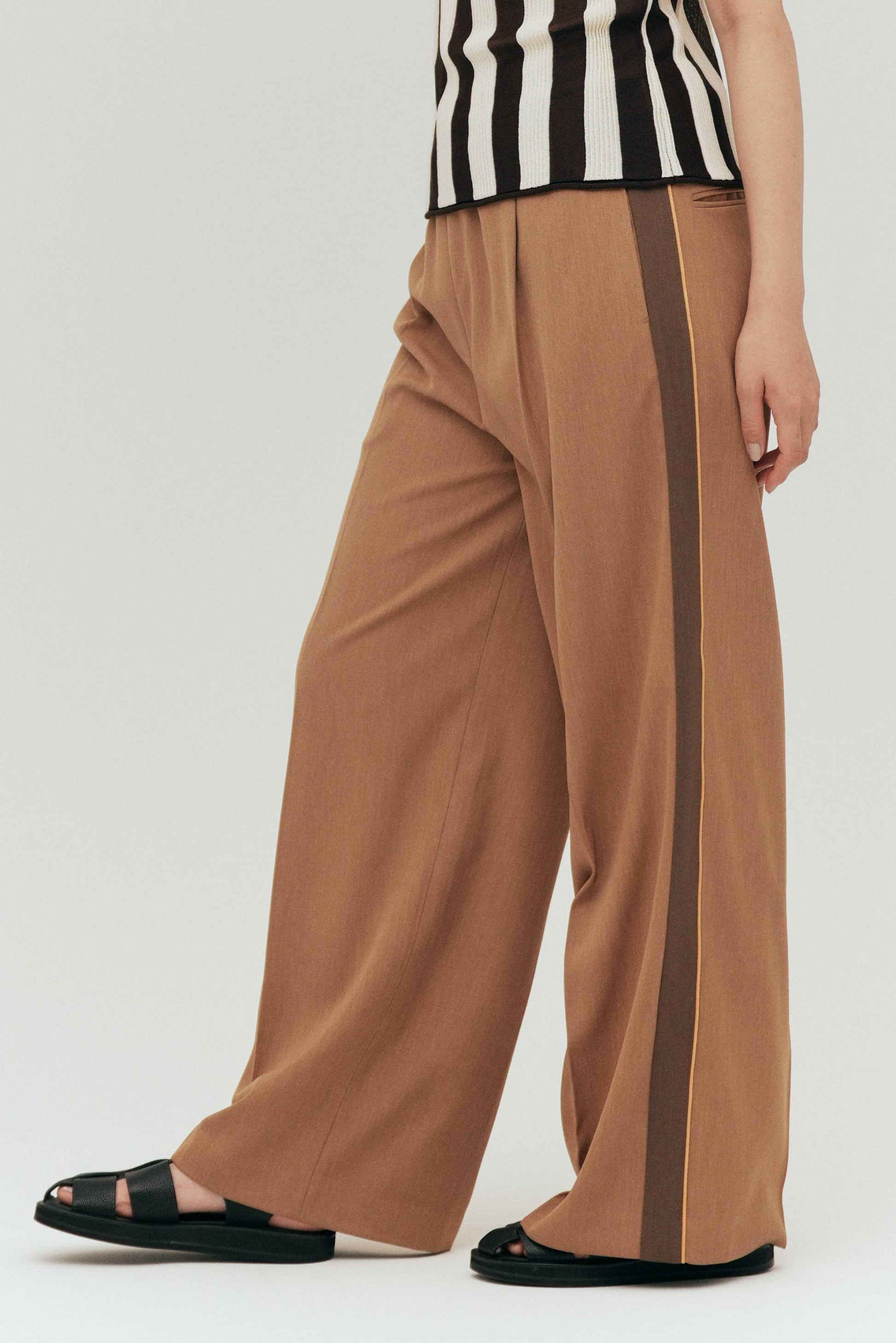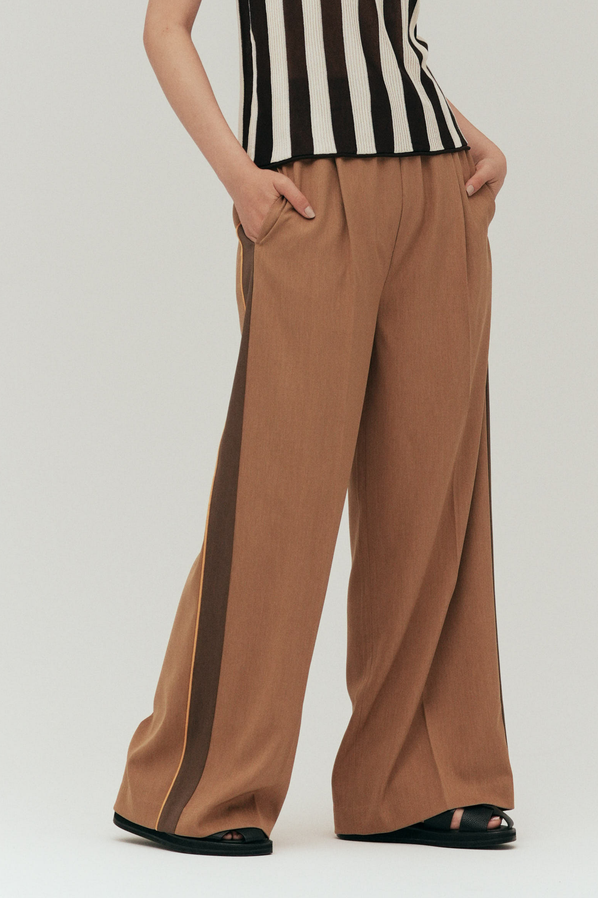 脚長効果バツグンのサイドライン、縦のラインが視覚的にすっきり見せ、スタイルアップを叶える。